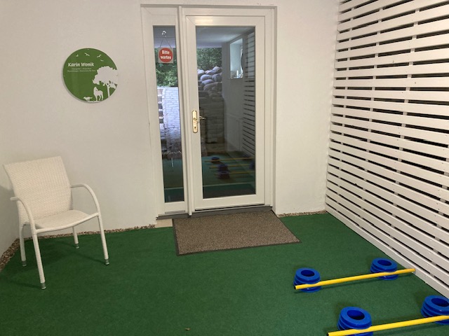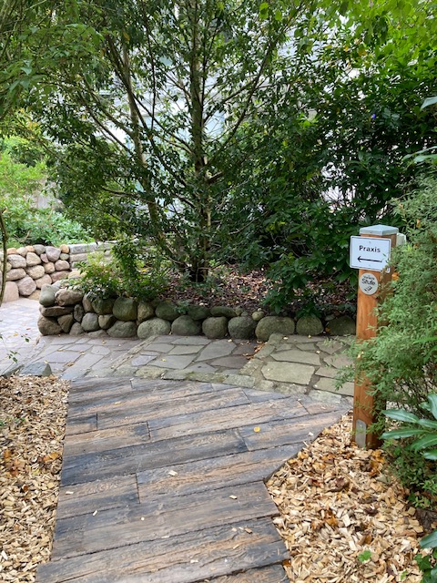 Die Praxis liegt am Hang – dieser kann ohne Probleme mit Pkw befahren werden. 3 Parkplätze stehen vor der Garage zur Verfügung.